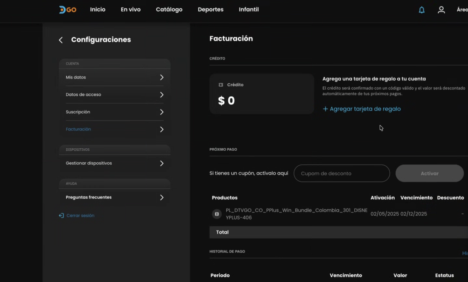 Ingresa a la sección de Suscripción y verifica si requieren activación manual.