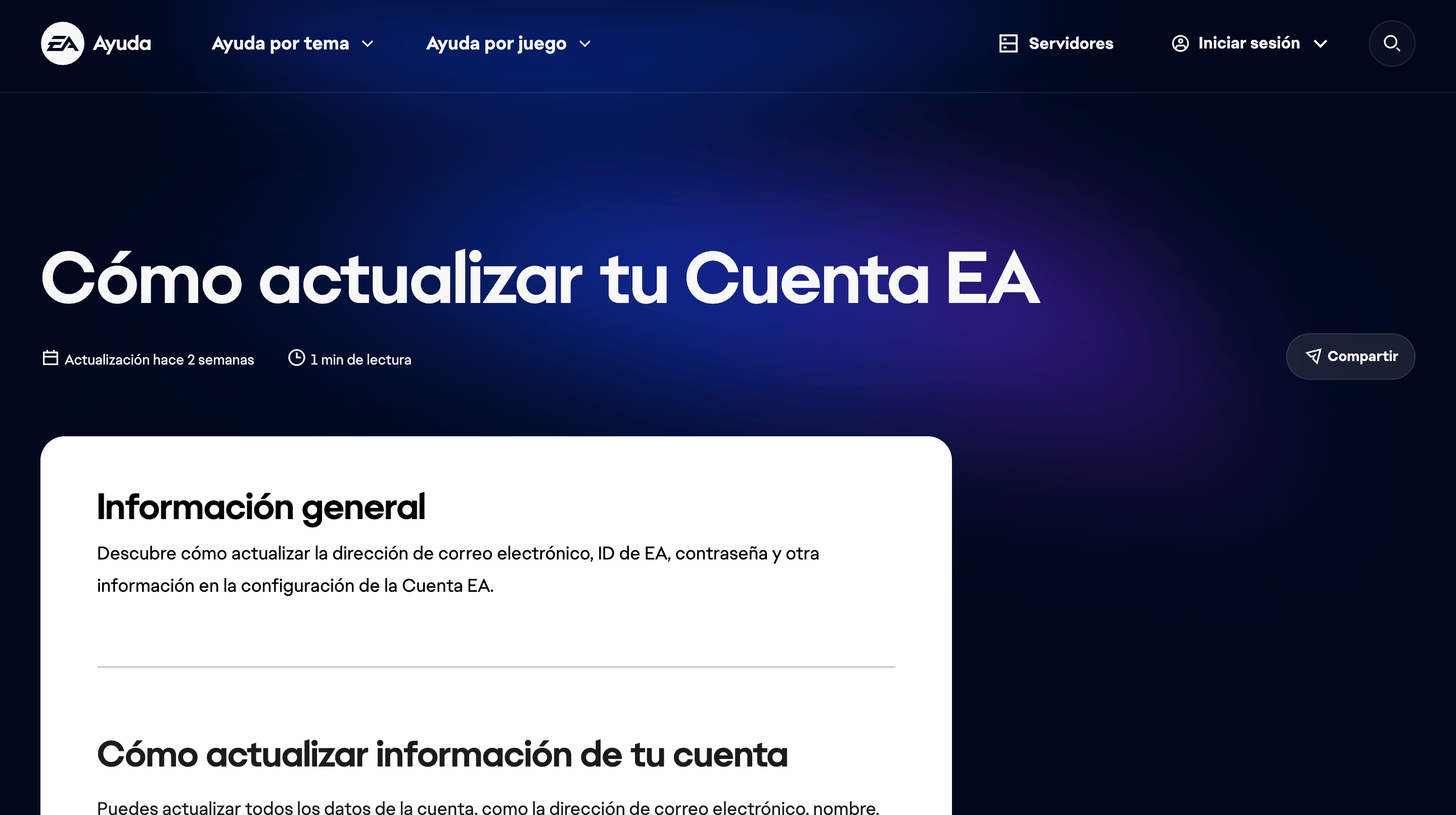 - Revisa que tu cuenta EA esté actualizada. Para ver cómo actualizar tu cuenta visita el sitio oficial de EA Sports.